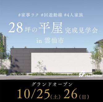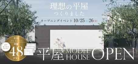 『家事ラク回遊動線』『28坪の平屋モデルハウス』『愛野町にオープン』